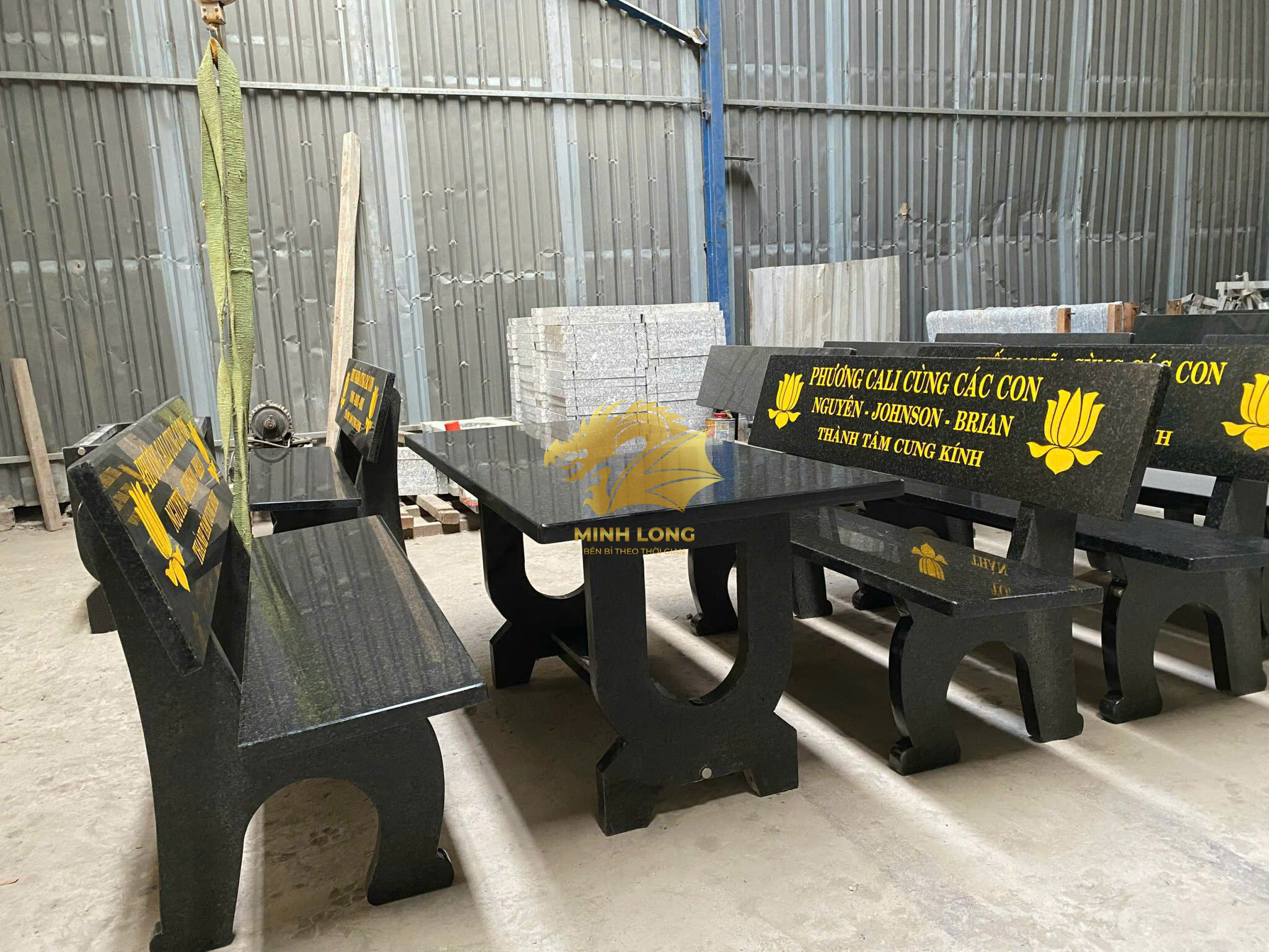 HÌNH ẢNH THỰC TẾ SẢN PHẨM GHẾ ĐÁ HOA CƯƠNG TỰ NHIÊN MÀU ĐEN CAMPUCHIA